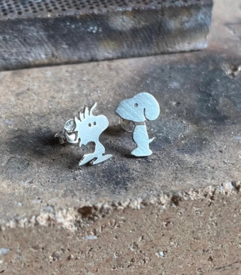 Snoopy and Woodstock earrings. Sterling Silver (925)